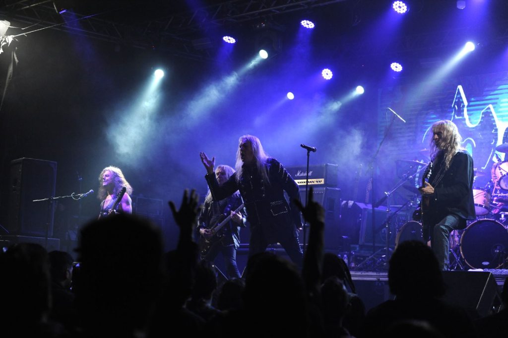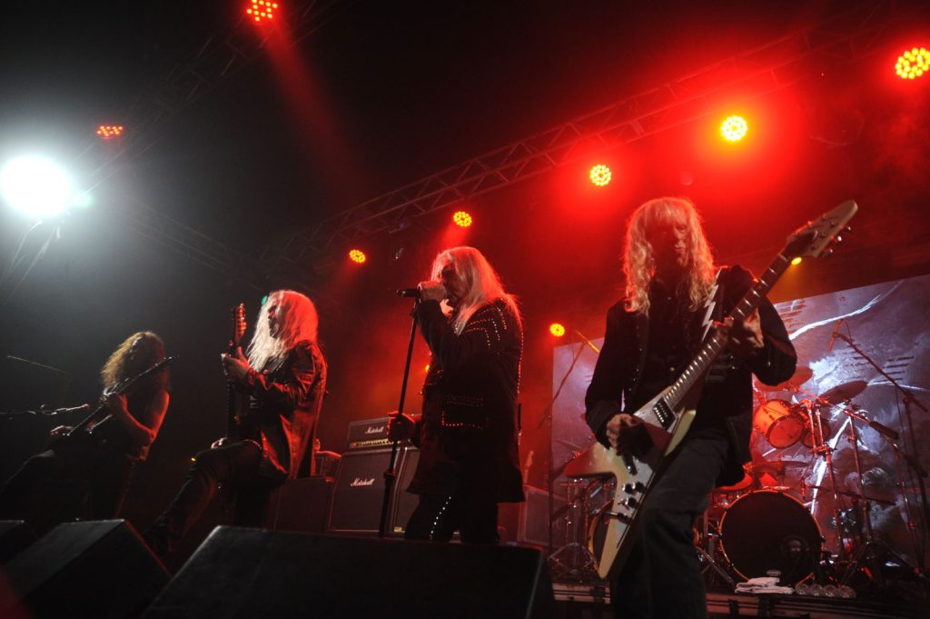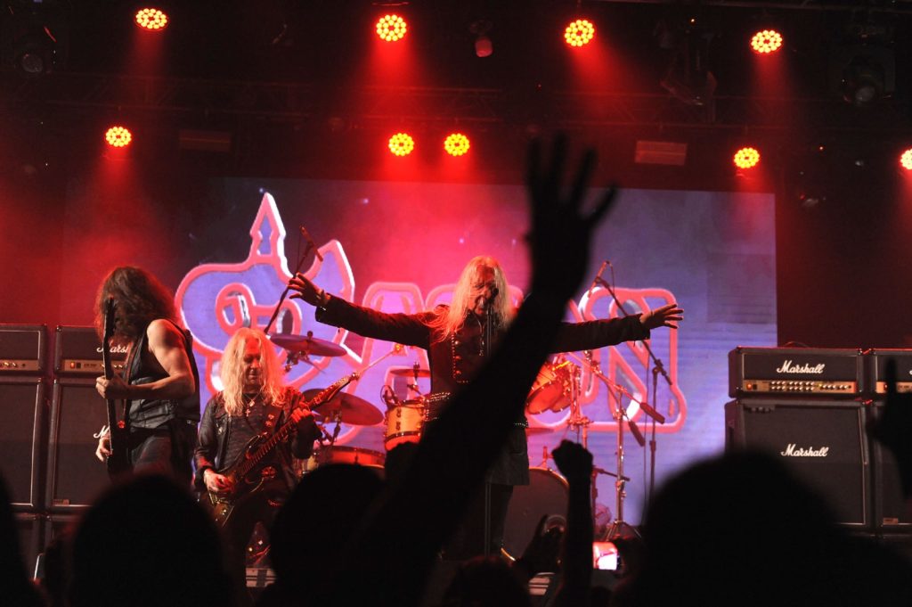O número de pessoas aumentaria muito mais, ainda que não lotasse a casa, quando, após uma introdução curta, Biff Byford (vocal), Brian Tatler e Doug Scarratt (guitarras), Nibbs Carter (baixo) e Nigel Glockler (bateria) subiram ao palco para começar uma verdadeira aula de heavy metal – para usar as palavras de um dos headbangers presentes que ouvi de passagem – que duraria cerca de duas horas e mostraria porque o Saxon é uma das bandas mais longevas do heavy metal mundial.