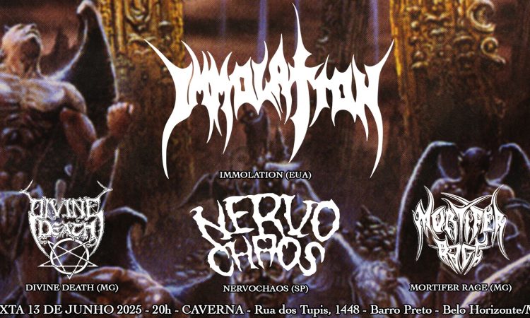 Para o show de Belo Horizonte, que acontece no Caverna (Rua dos Tupis, 1448 Barro Preto), Immolation e NervoChaos terão companhia das bandas mineiras Mortifer Rage e Divine Death. Ingressos para o evento estão disponíveis no Sympla, custam entre R$ 50,00 (meia/meia solidária) e R$ 100 (inteira).