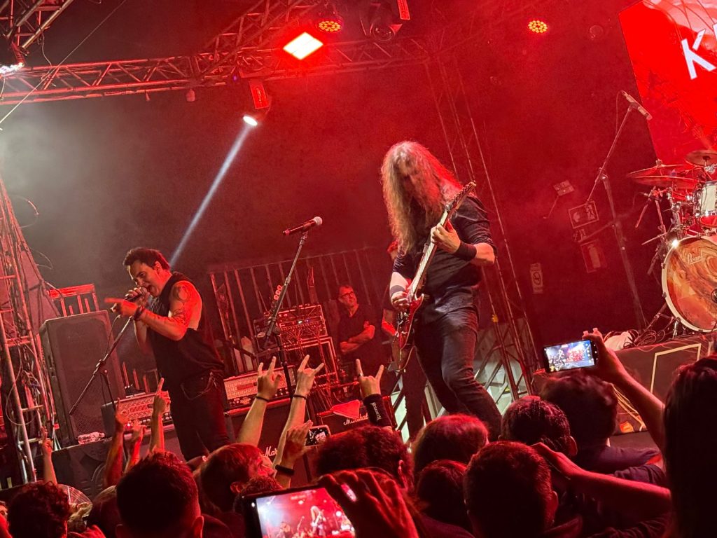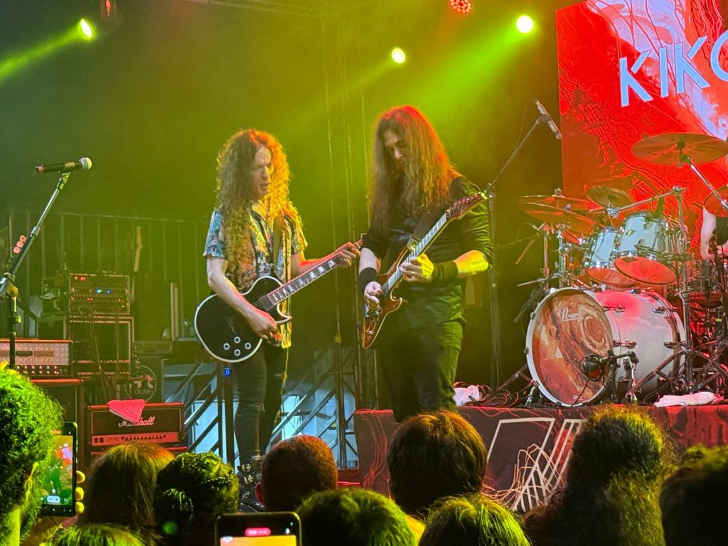 Daí em diante, o show teve vários momentos marcantes. No primeiro terço, que compreende a maior parte da apresentação, Kiko dividiu o set entre músicas próprias, do Angra e do Megadeth, com ele mesmo assumindo os vocais quando isso era exigido. Aqui podemos destacar “Pau de arara”, onde sua guitarra apresentou problemas e Luiz pôde mostrar porque acompanha Kiko em turnê, “Overflow”, “Dystopia” (Megadeth) e uma quase jam contendo trechos de “Carry on”, “Spread your fire”, “Nova era”, “Morning star”, “Evil warning” e “Speed”, do Angra.