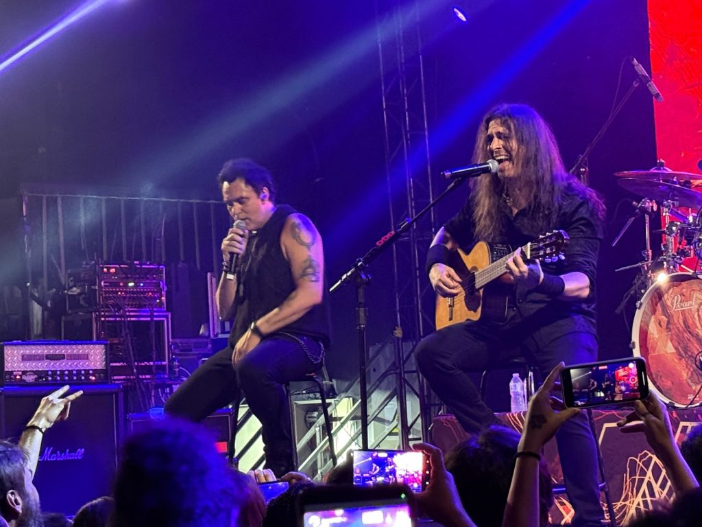 Logo a seguir foi a vez da outra pessoa no cartaz da turnê, o guitarrista Marty Friedman se juntar à Kiko e companhia para não só colaborar com Loureiro tocando trechos de músicas do Megadeth, como mostrar ao público composições próprias, tais quais “Hyper doom” e “Tearful Confession”. Um dos momentos mais legais desse último terço da apresentação foi quando Kiko e Marty prestaram uma homenagem ao movimento musical belorizontino que alcançou fama mundial sob a alcunha “Clube da Esquina” e tocaram uma versão toda própria, misturando a guitarra tipicamente metal de Marty com o violão de Kiko, para “O trem azul”, de Lô Borges. Essa, segundo Kiko, seria tocada apenas em BH, dada a relação da música com a cidade.